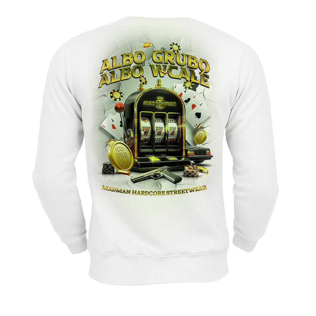 Z tyłu – „ALBO GRUBO, ALBO WCALE” – bo jak wchodzisz w grę, to tylko na pełnej kur**.