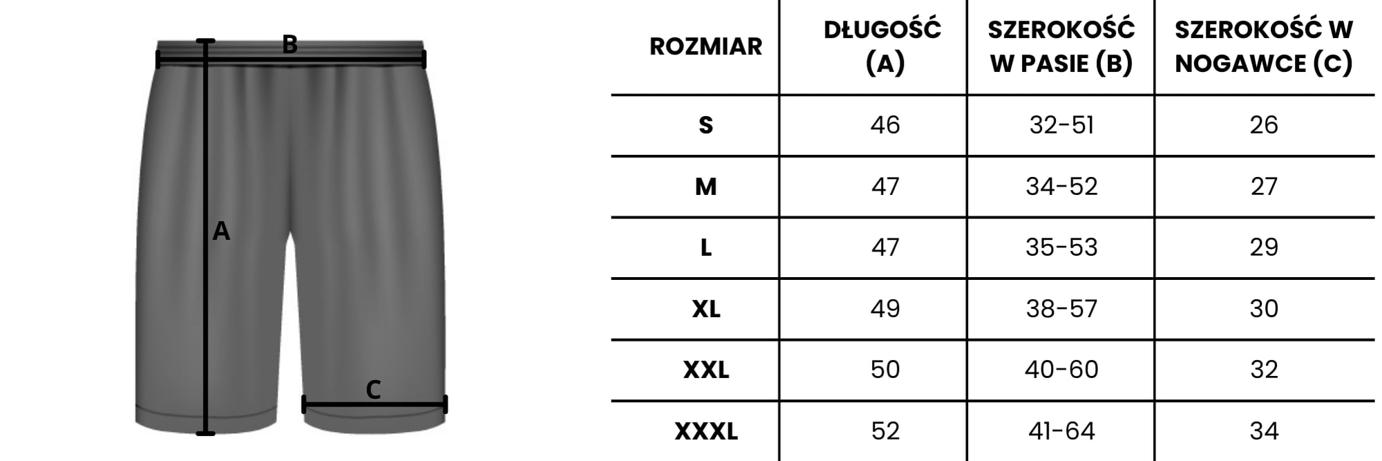 Nadruk na spodenkach został wykonany trwałą i sprawdzoną metodą, dzięki czemu spodenki zachowają estetyczny wygląd na długi czas.